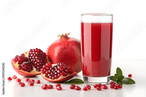 Pomegranate juice with fresh pomegranate. white background Ai generate.