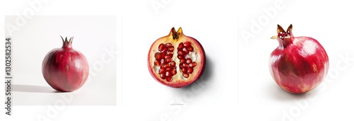 Pomegranates Whole Fruit, Cross Section, and Partially Opened