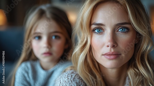 poor mature mother scolding small daughter indoors at home poverty concept