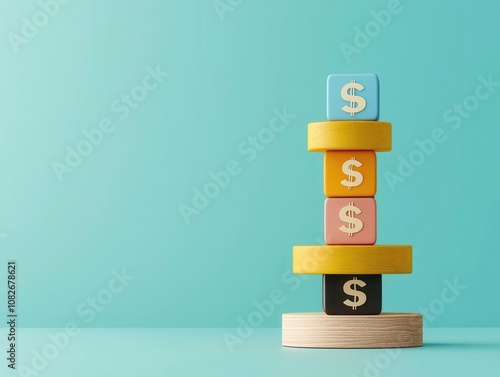 Portfolio risk, stack of unbalanced blocks with currency symbols, 3D illustration