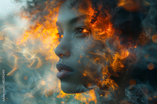 Portrait de femme parcourue par des lumières