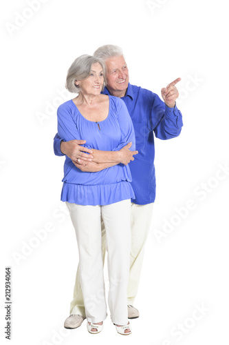 portrait of senior couple pointing something