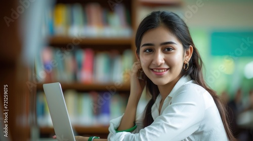 Portrait of a beautiful, young and intelligent-looking Indian Asian woman student wearing a white shirt