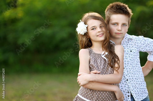 Portrait of a boy girl in a summer