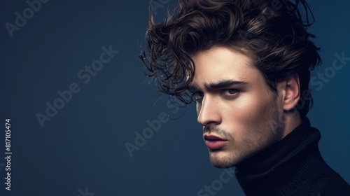 Portrait of a man with perfectly styled hair, showcasing its glossy texture and healthy shine.