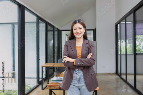 portrait of a person, Asian female standing with arms crossed,