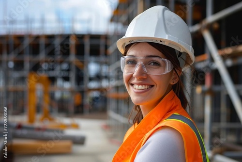Portrait of a smiling female engineer at a construction site Emphasizing the professional competence and positive impact of women in the engineering and construction fields