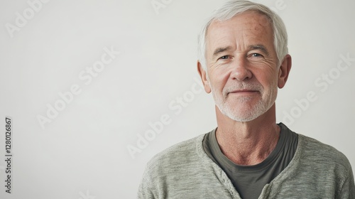 Portrait of a Smiling Senior Man with Gray Hair Against a Neutral Background