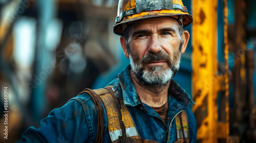 Portrait of a working man in a uniform and a hard hat. AI Generated