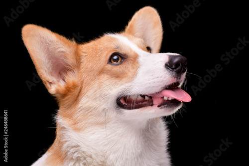 Portrait of a young, adorable Corgie - isolated on black