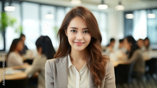 Portrait of a young Asian businesswoman smiling in an office