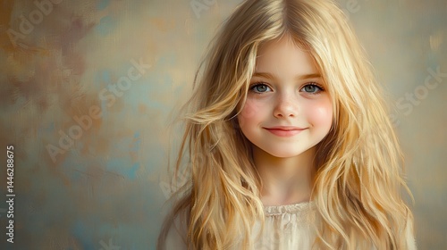 Portrait of a young caucasian girl with long blonde hair and blue eyes