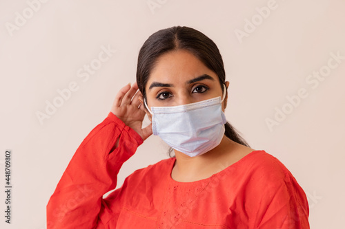 Portrait of a young woman with mask on her face.