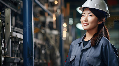 Portrait of an asian female engineer working in a factory