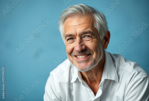 Portrait of an elderly man with a warm smile and a relaxed expression