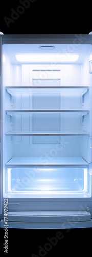 Portrait of an inside opened mini empty refrigerator, minimalist сreated with Generative Ai