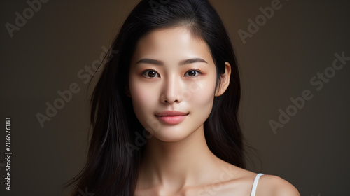 Portrait of Asian woman face with smooth glowing skin, Korean beauty concept. Generative AI