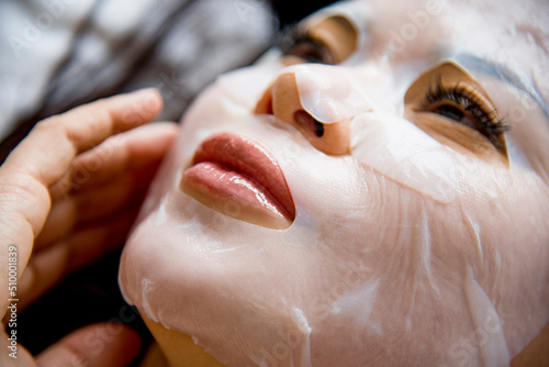 Portrait of beautiful Asian woman lying on massage table with mask on her face covered with mask beauty treatments in SPA salon