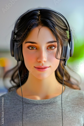 Portrait of call center operator, 25-year-old woman.