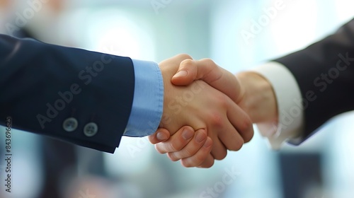 Portrait of cheerful young manager handshake with new employee Business partnership meeting in office Close up of handshake in the office Mature businessman shake hands with a younger : Generative AI