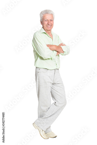 Portrait of senior man posing isolated on white background