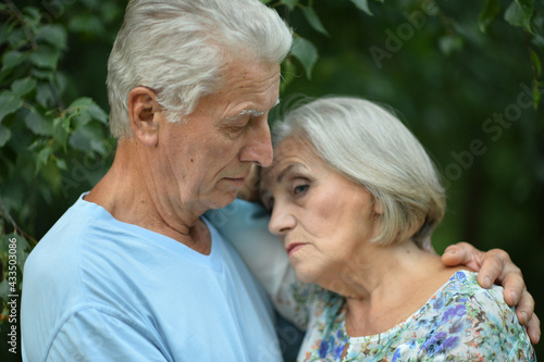 portrait of unhappy senior couple in the park