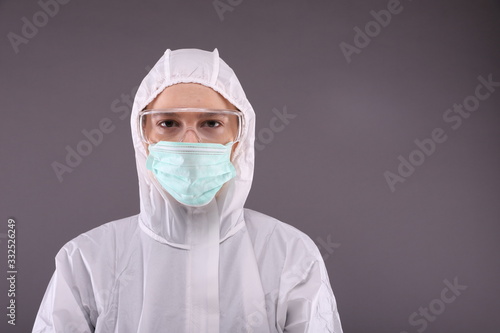 Portrait of woman in protective equipment
