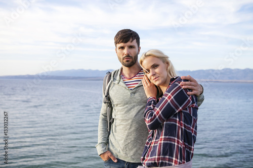 Portrait of young couple on water's edge