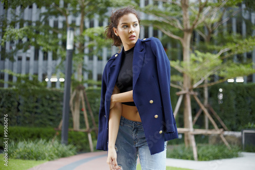 Portrait young female model in the city