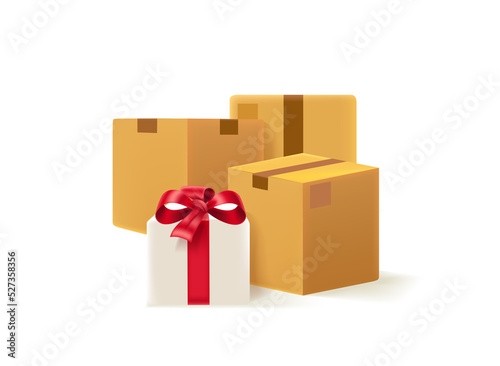 Postage boxes with map pin. Shipping concept.