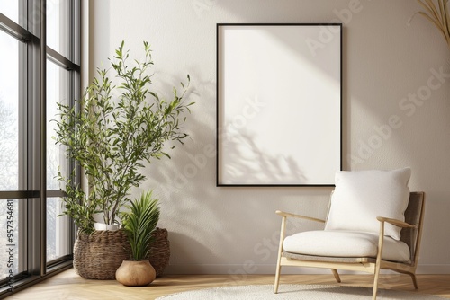 Poster Frame in Beige minimalist living room interior created with generative AI