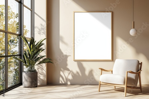 Poster Frame in Beige minimalist living room interior created with generative AI
