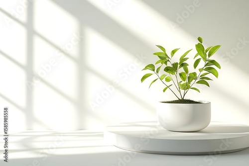 Potted Plant on Display Stand with Sunlight Streaming Through Window