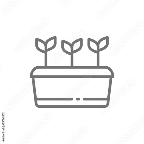 Potted plant, seed planting, agriculture line icon.