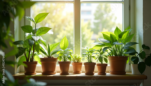 Potted Plants Growing on Window Sill with Natural Sunlight
