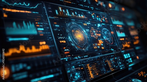 Power Grid Interface with High-Tech Visuals Displaying Data Analysis