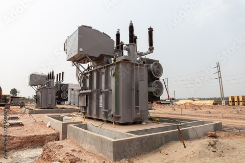 Power transformers are being installed for use in high voltage substations.
