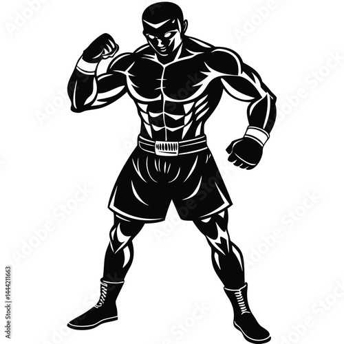 Powerful Boxer Silhouette Muscular Athlete Ready to Fight