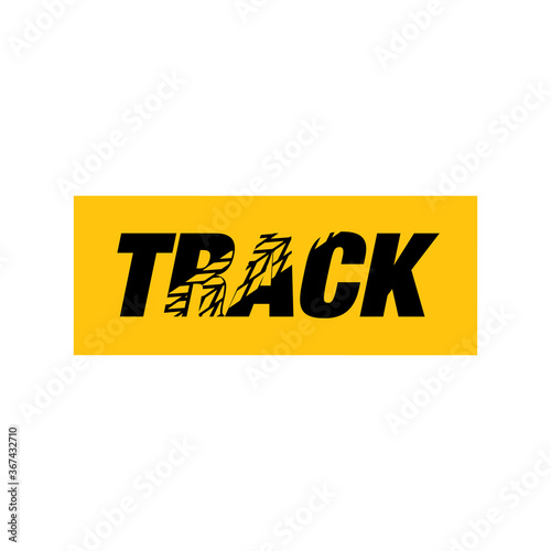 powerful sporty TRACK Lettering Typography logo design vector illustration