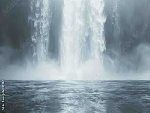 Powerful waterfall with mist and water spray, creating a dramatic and serene scene. Suitable for nature, landscape, or dramatic-themed projects.