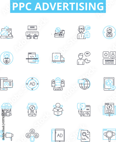 PPC advertising vector line icons set. Pay-per-click, Advertising, PPC, Campaign, Cost, Clicks, Targeting illustration outline concept symbols and signs