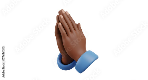 Praying hands emoji with dark skin tone, symbolizing hope, faith, and spirituality on white π