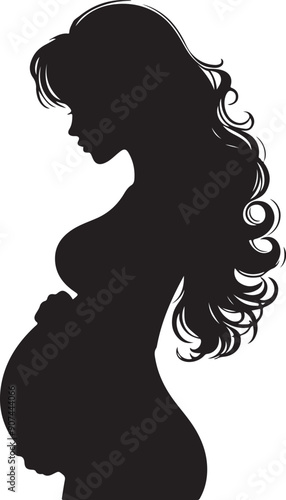 Pregnant Lady Silhouette Line Art Vector Illustration On Isolated White Background