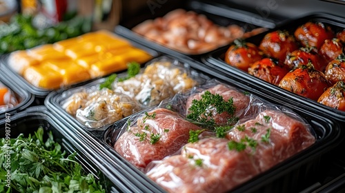 Prepared meal components in plastic containers