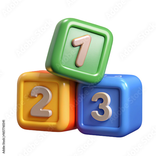 Preschool number 123 block 3d icon isolated on illustration png background of one two three education cube brick concept or school learn child play toy sign and kid math count box simple study symbol.