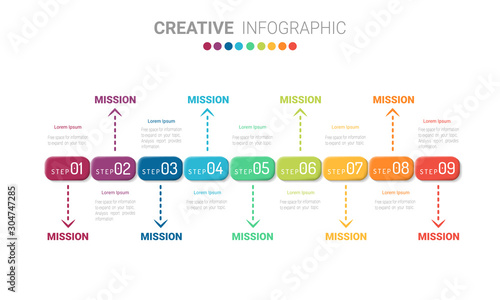 Presentation business infographic template, Abstract infographics number options template with 9 steps. Vector illustration.