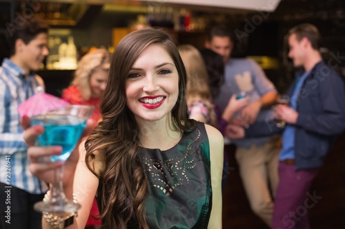 Pretty brunette drinking a cocktail