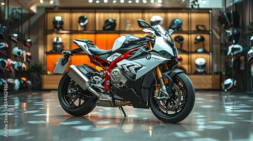 Prime Showcase: Contemporary Motorcycle and Array of Helmets