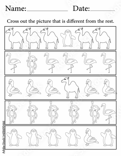 Printable Activity sheet for Kids | Activity Worksheets for Kindergarten | Find the Different Animal