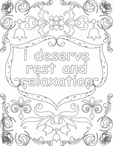 Printable floral coloring page for kids and adults with inspirational words for self talk and self improvement. it helps to succeed and struggle against life to enjoy the tough journey